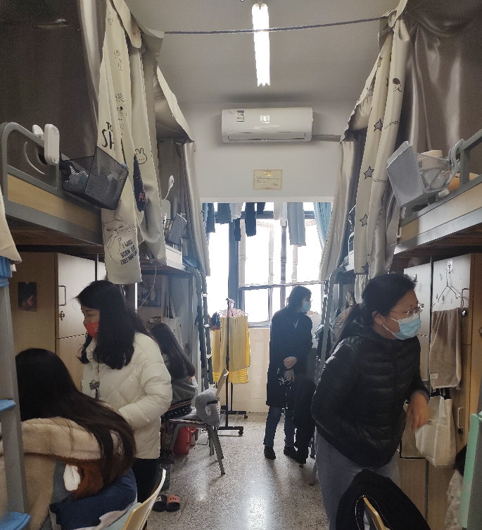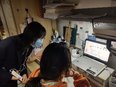 走访过程中,老师们看到了同学们在宿舍充分利用笔记本电脑、手机和pad等多种电子设备认真进行线上学习,有些同学边听课边记笔记;有些同学一边用pad在线聆听教师授课,一边在电脑上完成实训任务。老师们详细询问了学生线上学习中遇到的困惑,对学生提出的问题做出解答,对学生关心和反馈的内容给予指导,希望同学们理解学校疫情防控的相关规定,严格按照防疫要求,共同营造健康安全的校园生活。同时也提醒学生宿舍要常通风、保持卫生,希望他们注意锻炼身体、保持乐观心态,做好疫情防护。