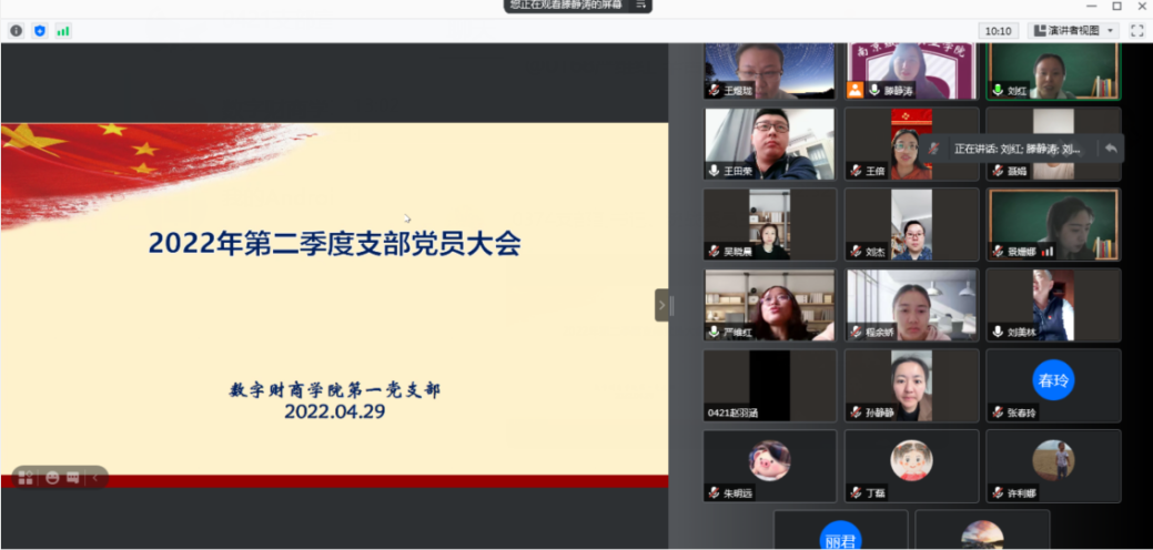 最后支部书记滕静涛进行了活动总结,要求全体党员教师时刻牢记市级先进基层党组织成员的身份,认真完成每月的政治理论学习任务,高质量做好党交给的各项工作,着力创新业务与党建融合内容、方式和成果,力争打造具有鲜明数字财商特色的党建工作模式,以更加优秀的业绩迎接党的二十大胜利召开。