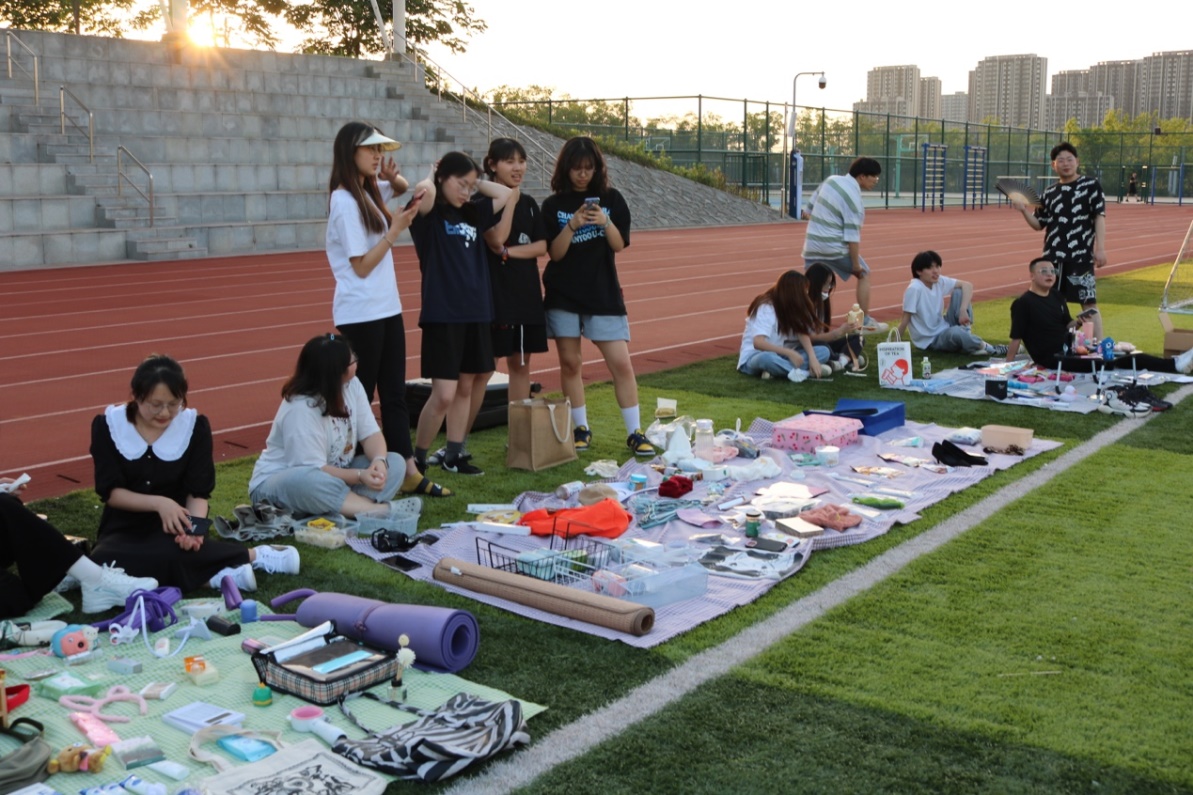 夏至未至,大二的学长学姐们纷纷练摊儿做生意,在“跳蚤市场”里卖出一件一件伴随他们在校时光的物品。看着川流不息的人群,即将离别的伤痛之感一瞬之间被这火爆的气氛所淹没,取而代之的是一股新鲜,一片欢乐。片刻,大一的同学们也积极的加入了这场活动,在这里,各类二手商品应有尽有,新奇独特,同学们将自己闲置的东西进行转让售卖,如化妆盒,鼠标,毛绒玩具,裙子,高跟鞋,漫画书等应有尽有。