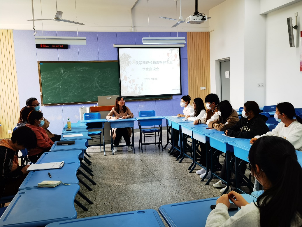 2022年10月25日下午,半岛官方端网页版商贸物流教研室分专业召开商务管理专业、现代物流管理专业、跨境电子商务专业和国际商务专业学生座谈会。此次座谈会分别在厚生楼306教室、302教室和508教室举行。各专业专任教师以及各专业2020级学生代表、2021级学生代表共同在各自分会场参加此次座谈会。