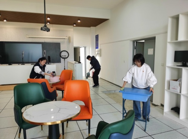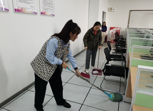 活动前,支委会专门开会研究了活动方案,在超星支部网络党课中发布通知。当天,支部书记主持召开在线会议强调活动意义和要求。本次劳动组织以小组包干负责制的形式开展,每组2名教师党员,共9组。每组完成对溧水校区厚生楼5楼实训室的环境卫生保养及安全隐患专项检查,活动成果如下表所示。党员教师们带领入党积极分子,对9个实训室进行卫生打扫、调整桌椅、检查电脑设备、进行相关的安全排查,并把劳动所得信息整理成表格,以便后续反馈给相关部门加强对实训室的管理。