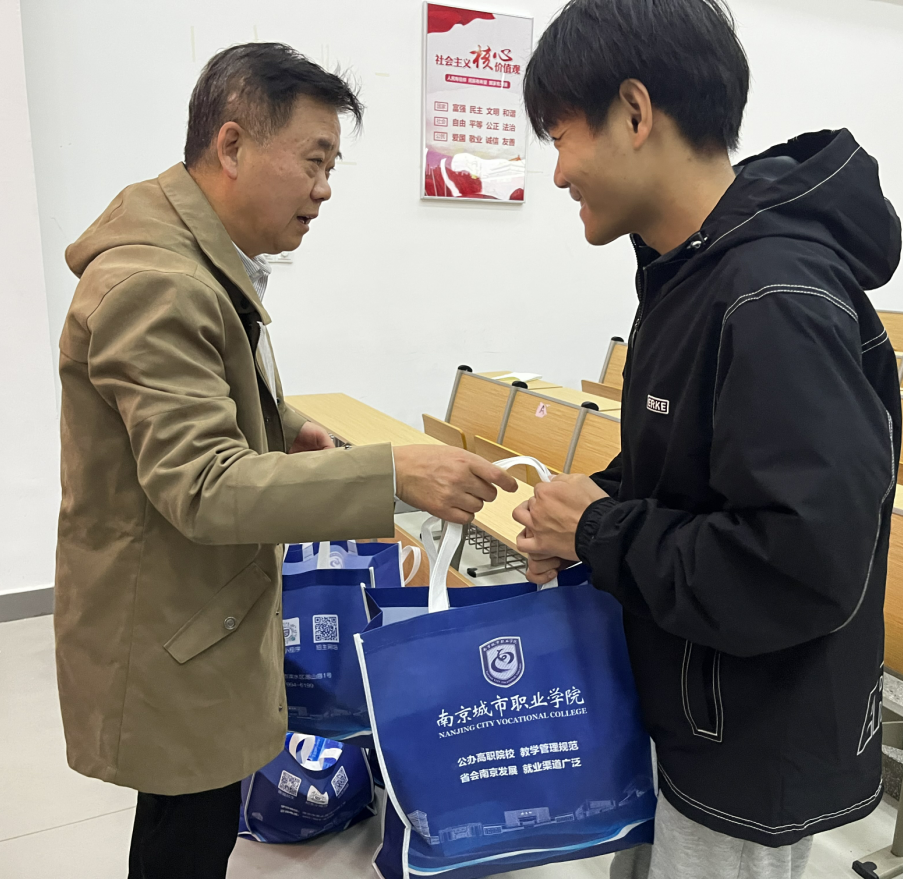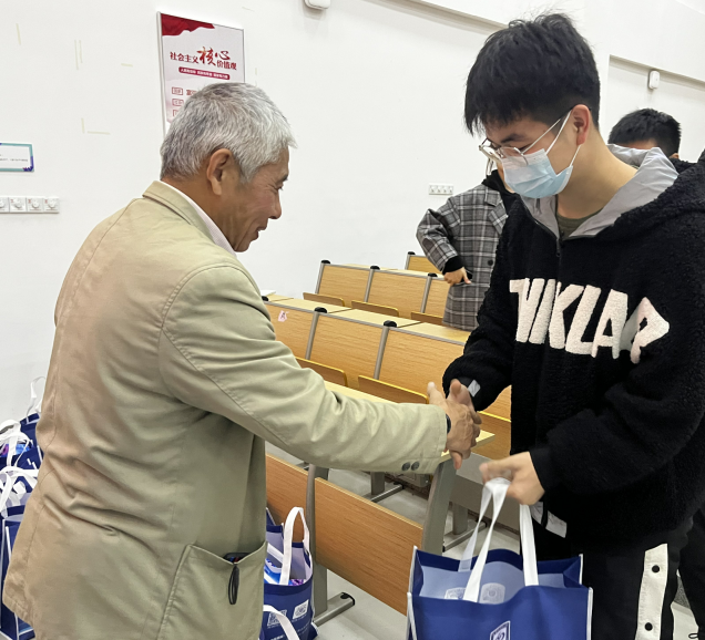 最后,三位老同志为每位学生代表送上了生活用品。从这些精心挑选的“十件套”大礼包中,充分展现了我院关工委对每一位家庭困难学子们的关心、关爱、呵护,切实地将温暖与关怀送到每一位同学的心坎。活动现场的学生深受鼓舞,表示定会加倍努力学习,以优异的成绩回报学校、回馈社会,努力奋进、心怀暖阳,为心中的梦想奋斗前行。