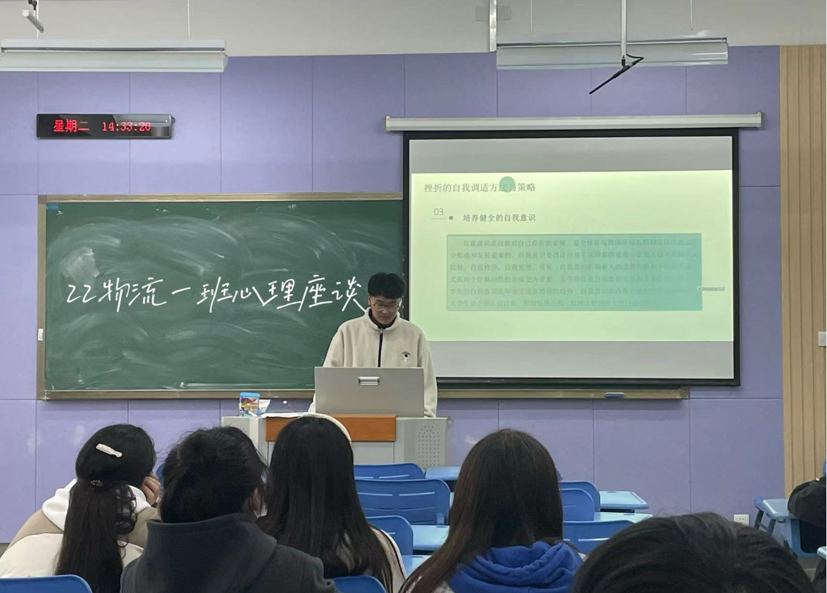 为积极响应学校“校园健康生活月”活动,让同学们了解生命孕育的艰辛,认识到生命的可贵,从而珍爱生命、健康成长,11月22日、25日下午,半岛官方端网页版22级现代物流管理1班、2班在厚生楼开展“关爱自己、呵护生命”心理主题班会,班会由心理委员石家乐、王佳主持,班级全体学生参与。