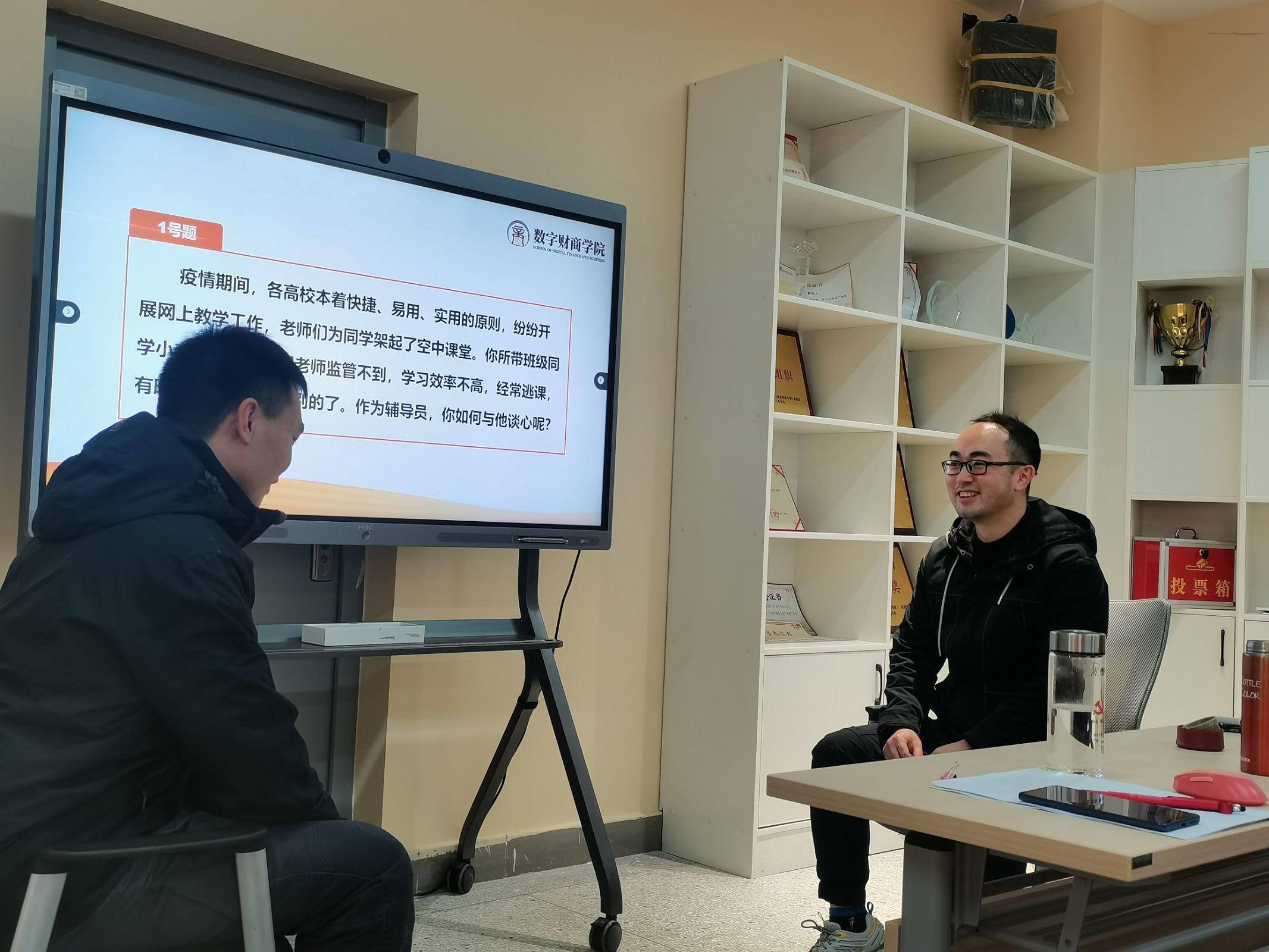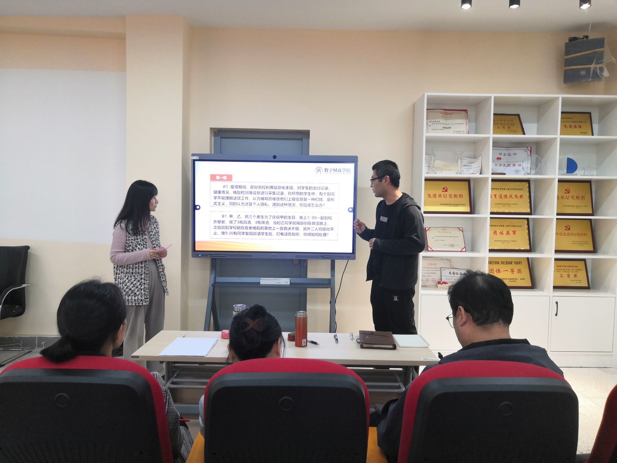 我院领导高度重视此次比赛,辅导员队伍积极备赛,大力参与。此次比赛共分为“案例研讨”和“谈心谈话”两个部分。其中案例研讨比赛以“我提问,你回答”的方式开展,由AB选手围绕案例共同辨析原因、研讨对策、总结规律,并在最后环节进行提问,主要考察选手综合运用理论分析问题、研判问题、解决问题、应急处突等能力。谈心谈话比赛遵循解决思想问题和解决实际问题相结合的原则,以谈话方式帮助学生解决实际面对的问题,主要考察辅导员综合运用理论分析问题、研判问题、解决问题的能力。