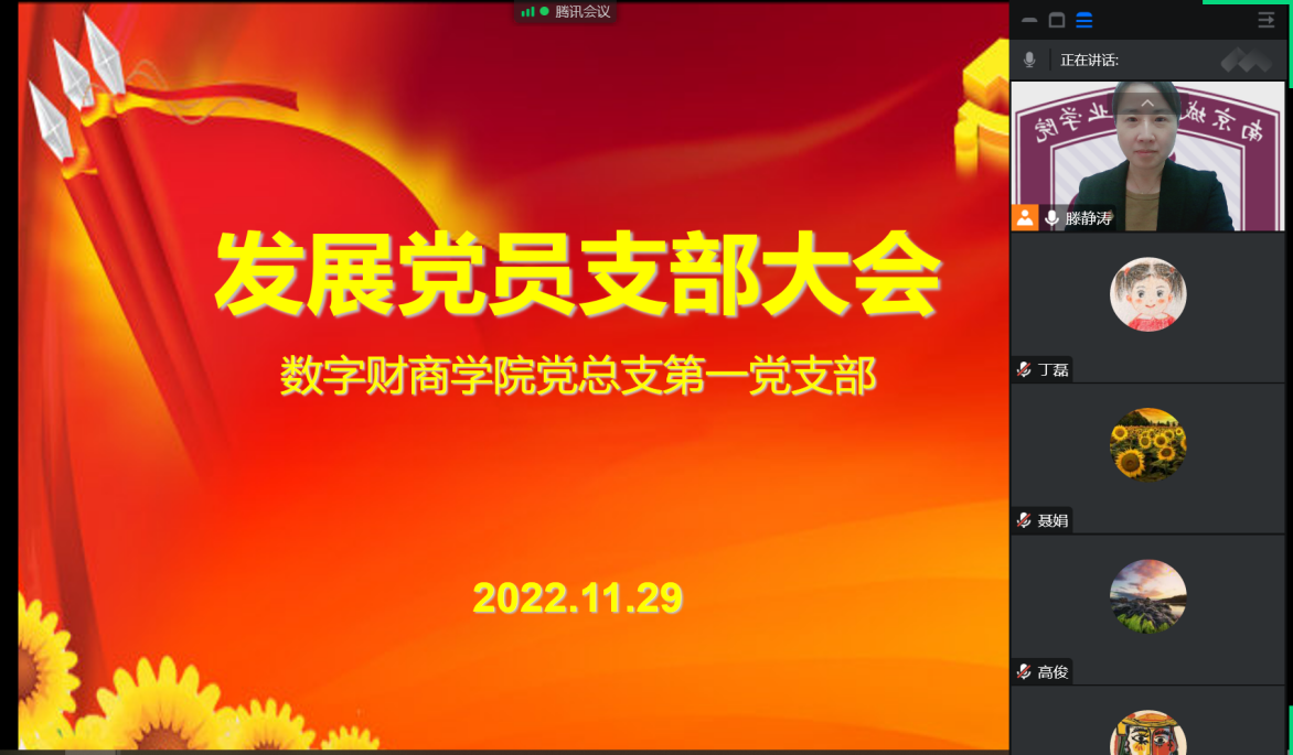 2022年11月30日,经院党总支批准,半岛官方端网页版第一党支部通过腾讯会议召开了预备党员发展大会。此次大会由党支部滕静涛书记主持,第一党支部17名党员及发展对象参加会议。