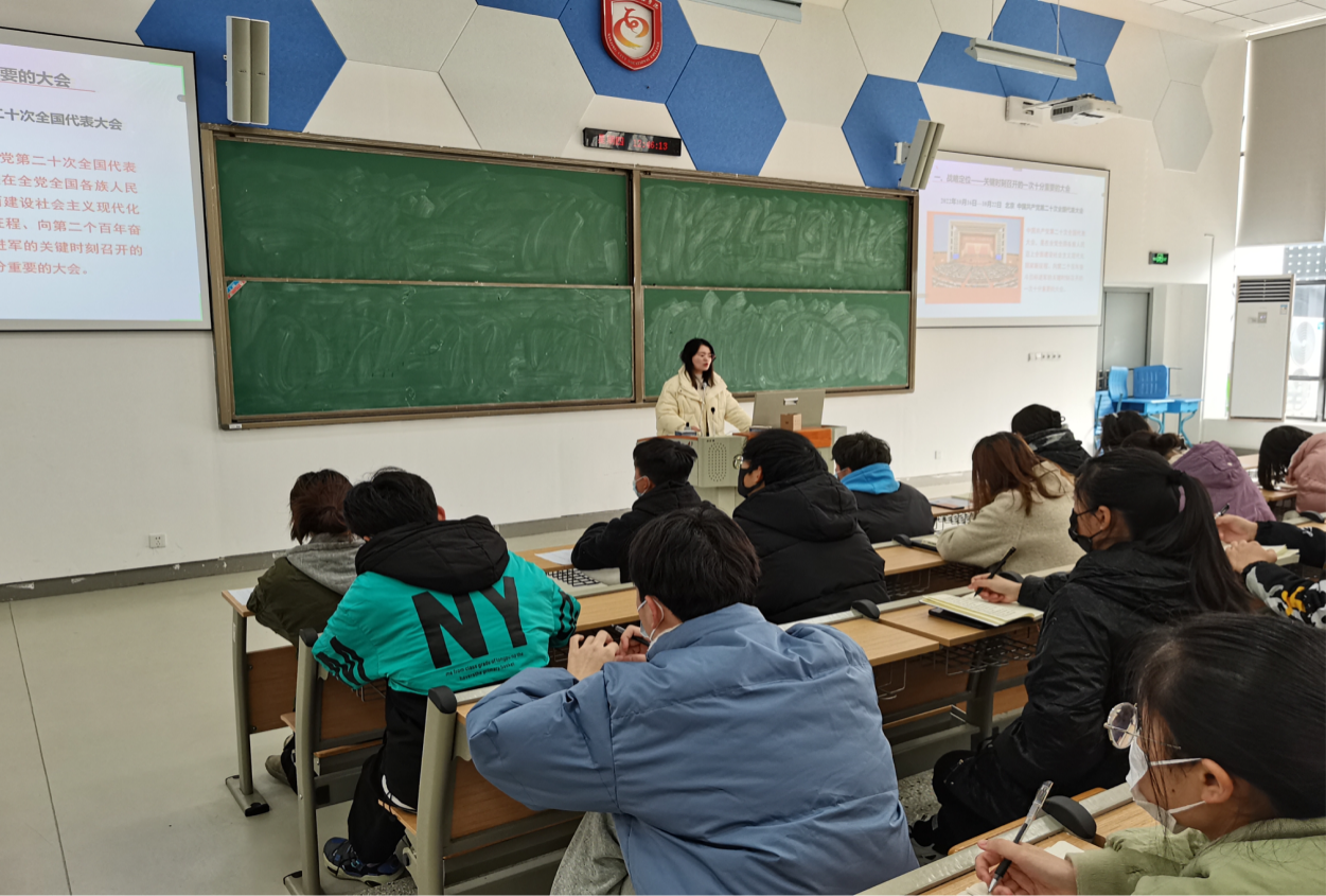 为提高我院学生的党性修养,端正同学们入党动机、强化同学们的责任意识,半岛官方端网页版党总支于12月1日中午12点30分在厚生楼101、309开展了以“不负时代,不负韶华——学习贯彻党的二十大精神”为主题的党课培训。本次主讲教师为我院兼职辅导员孙洁星老师,160多名学生现场参加了党课学习。