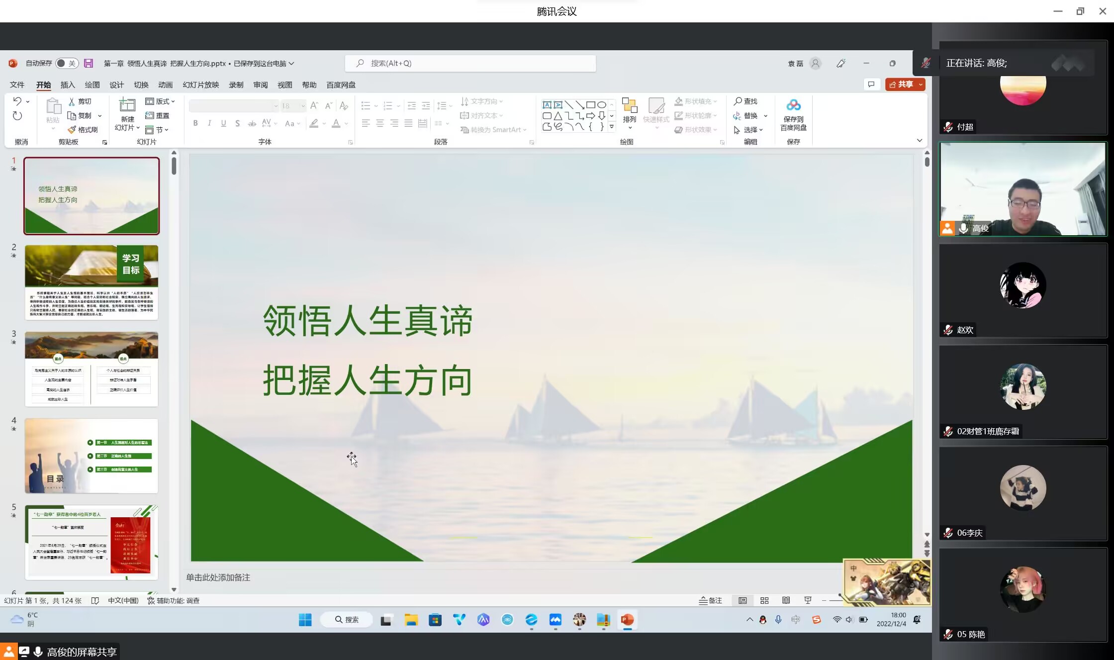 为增强学生责任感与使命感,更好地理解和担负起新时代所赋予的使命,半岛官方端网页版于2022年12月4日开展了党课培训第四讲“领悟人生真谛,把握人生方向”。本次主讲教师为我院专职辅导员高俊老师,160多名学生通过腾讯会议线上参加了党课学习。