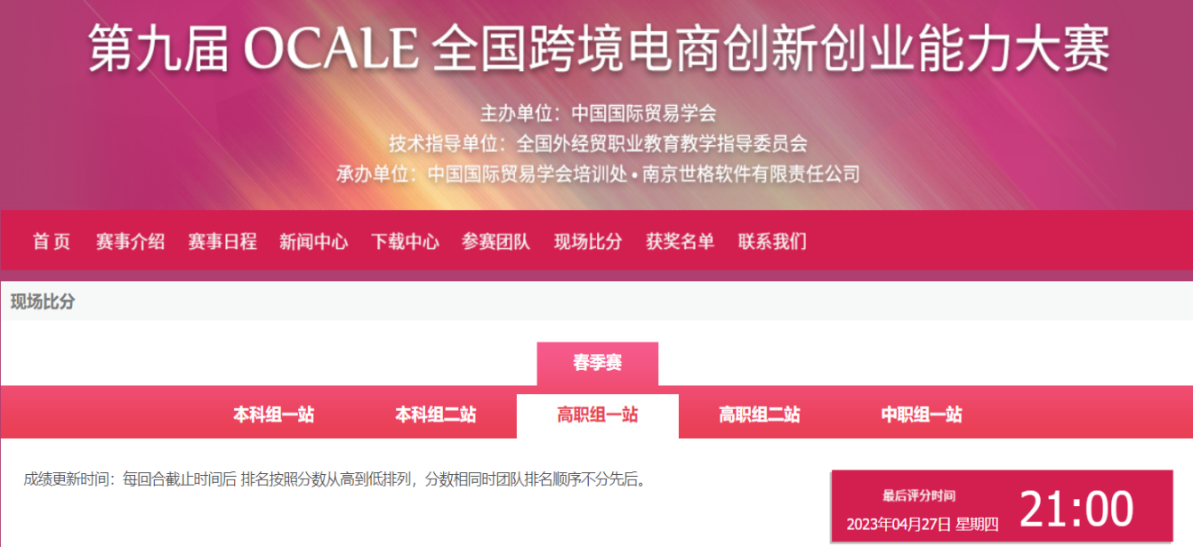 2023年4月25日-4月27日,数字财商学院21级国际商务专业王燕燕、22级跨境电子商务专业田子怡、陈芷萱、刘耿新、吴昊、文楚程、徐若芯、姚好、李媛同学在王倍、滕静涛、赵羽涵老师的指导下,代表我校参加了第九届OCALE全国跨境电商创新创业能力大赛(春季赛),我校3支代表队与来自全国151所高职院校的510支队伍展开角逐,最终荣获2项团体一等奖和1项团体二等奖的好成绩。