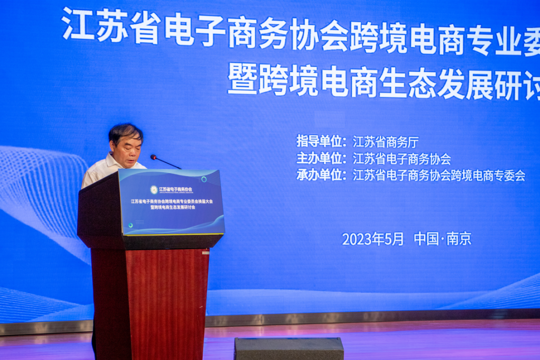 省电商协会会长高成祥到会致辞,肯定了协会跨境电商专委会成立5年来的成果,高频次、高规格举办行业活动、推动传统制造业提档升级、助推全省跨境人才队伍建设等;他介绍了全省跨境电商良好的发展态势和相关利好政策,重点解读了相关部门关于发展跨境电商重点行动方案的实施和推进。最后高会长指出,希望跨境电商专委会以本次换届为契机,不断创新服务理念,拓展服务领域,加强平台合作,推动半岛online(中国)的企业做大规模,吸引半岛online(中国)头部企业落户江苏,推动全省跨境电商发展跨上一个新台阶。
