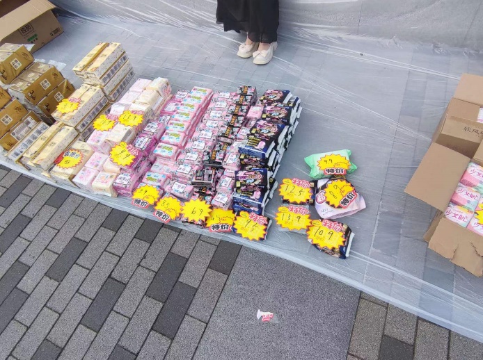2023年5月25日下午3:30的食堂门口,十几位同学正在练摊,走近一问原来是跨境电商社团的社员们在进行实践活动。