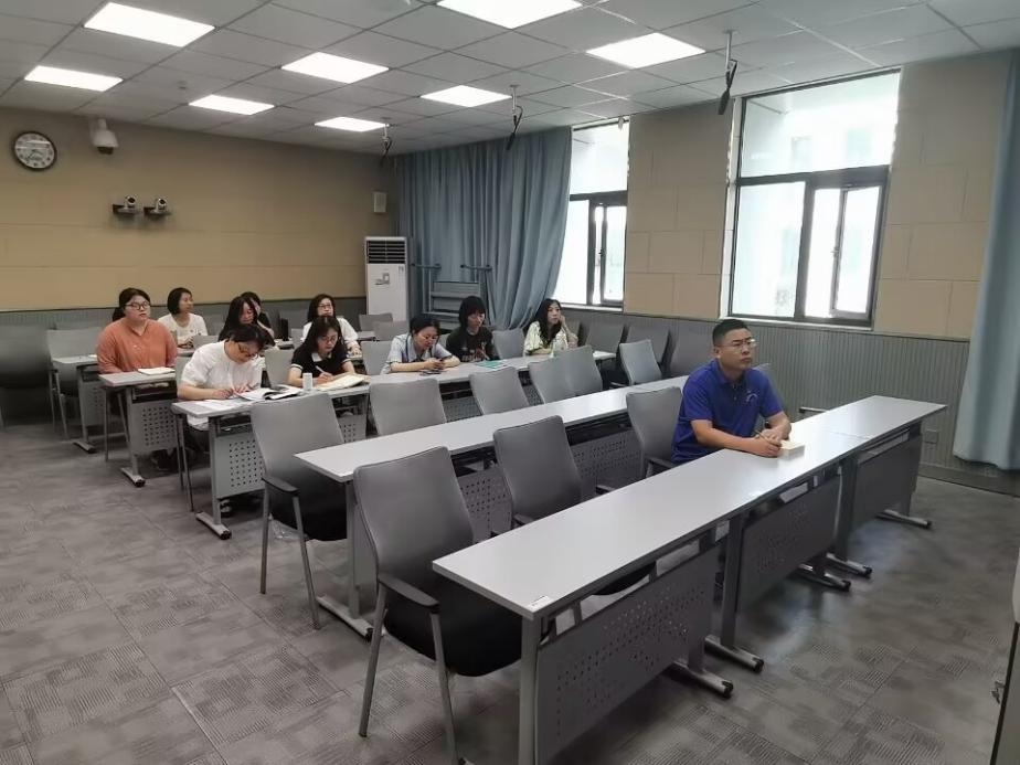 接着,滕静涛以《树立“四链”融合新生态下的“强校有我”志向》为题,给支部党员讲授专题党课。她以学习贯彻习近平新时代中国特色社会主义思想主题教育工作会议的重要讲话为引,详细阐述了职业教育教育链、人才链、产业链、创新链“四链”融合的新生态格局,进一步形成职业教育“职普融通”“产教融合”与“科教融汇”的发展思路,通过优化职业教育类型定位,明确了职业教育不可替代的特征;分享了学界提出的通过生产与教学、企业与学校、工作与学习、师傅与教师身份、学徒与学生身份、职业文化与校园文化等多元素的深度融合,解决职业教育面临的问题,形成多元、开放、终身学习的办学环境和深厚广博的创新底蕴;对应分析了当前我院在“四链融合”生态下已实现的重要突破及亟待破解的重要发展项目。