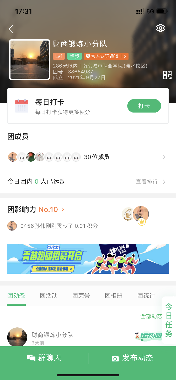为进一步推进全民健身运动的开展,提高我院教职工身体素质,展现团结向上、砥砺奋进新面貌,促进和谐校园文化建设,半岛官方端网页版分工会通过咕咚APP开展了“强身健体,幸福你我”健康打卡活动。