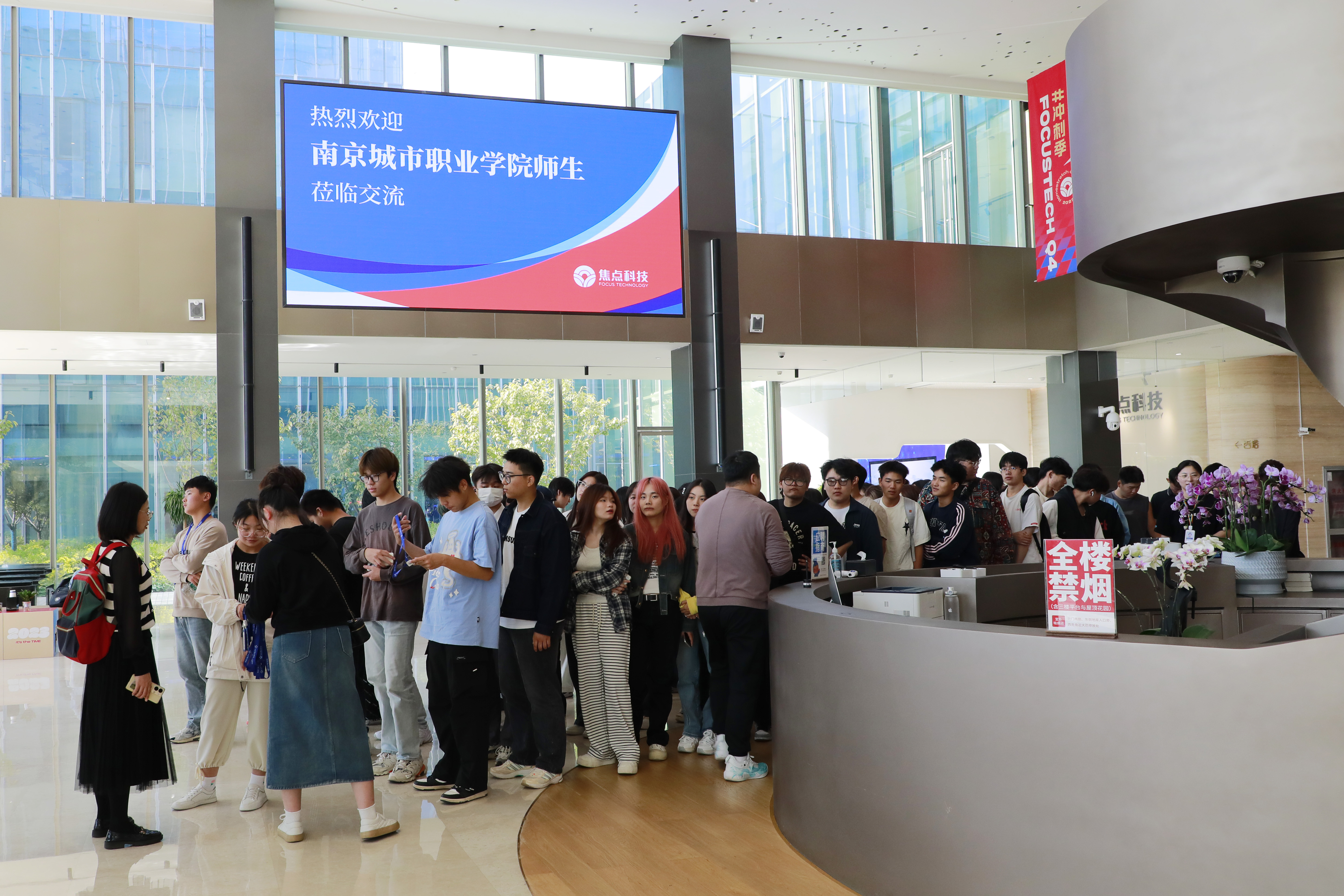 2023年10月31日下午,为了帮助同学们更好地了解专业和将来的就业方向,23级跨境电子商务专业1班和2班的同学们在专业老师的带领下前往位于江苏自由贸易试验区南京片区的焦点科技股份有限公司参观。