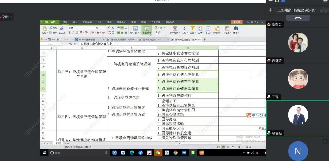 随后,课程负责人依序介绍了本课程知识树设计思路和目前的资源建设进度,吴洪贵教授和杨富强总经理逐一对知识树进行点评和审阅,提出具体的修改意见和建议。吴教授指出,专业核心课程的知识树设计应当重点参考《高等职业教育专科跨境电子商务专业教学标准(征求意见稿)》中典型工作任务以及主要教学内容与要求,对标修改;课程应该以线上线下混合式教学开展,资源库教学资源一般仅展示线上教学部分;所有的学习内容应“去平台去人物化”。杨富强总经理指出,课程建设应当重点突出与跨境电商专业的融合,同时考虑国外典型跨境电商的发展特点。虽然是线上会议,但是专家和老师都极其认真,讨论热烈,废寝忘食,原定2小时的会议时间一再延长,直到晚上8点才结束。