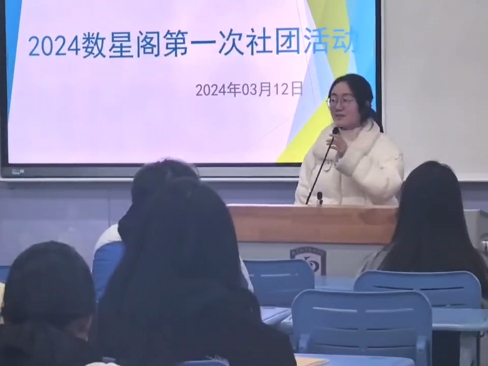 第二环节:由郭冉冉、吴洋洋给社团成员分发社团材料,并由郭冉冉讲解了材料的用处与意义。数星阁作为学术科技类社团,社团采购学习用品的出发点就是希望能够提供学习材料给社团成员。社团为社团成员们提供了益智动脑的游戏,基础学习用品,并欢迎有需求的同学向社团负责人和负责老师寻求学习生活上的帮助。