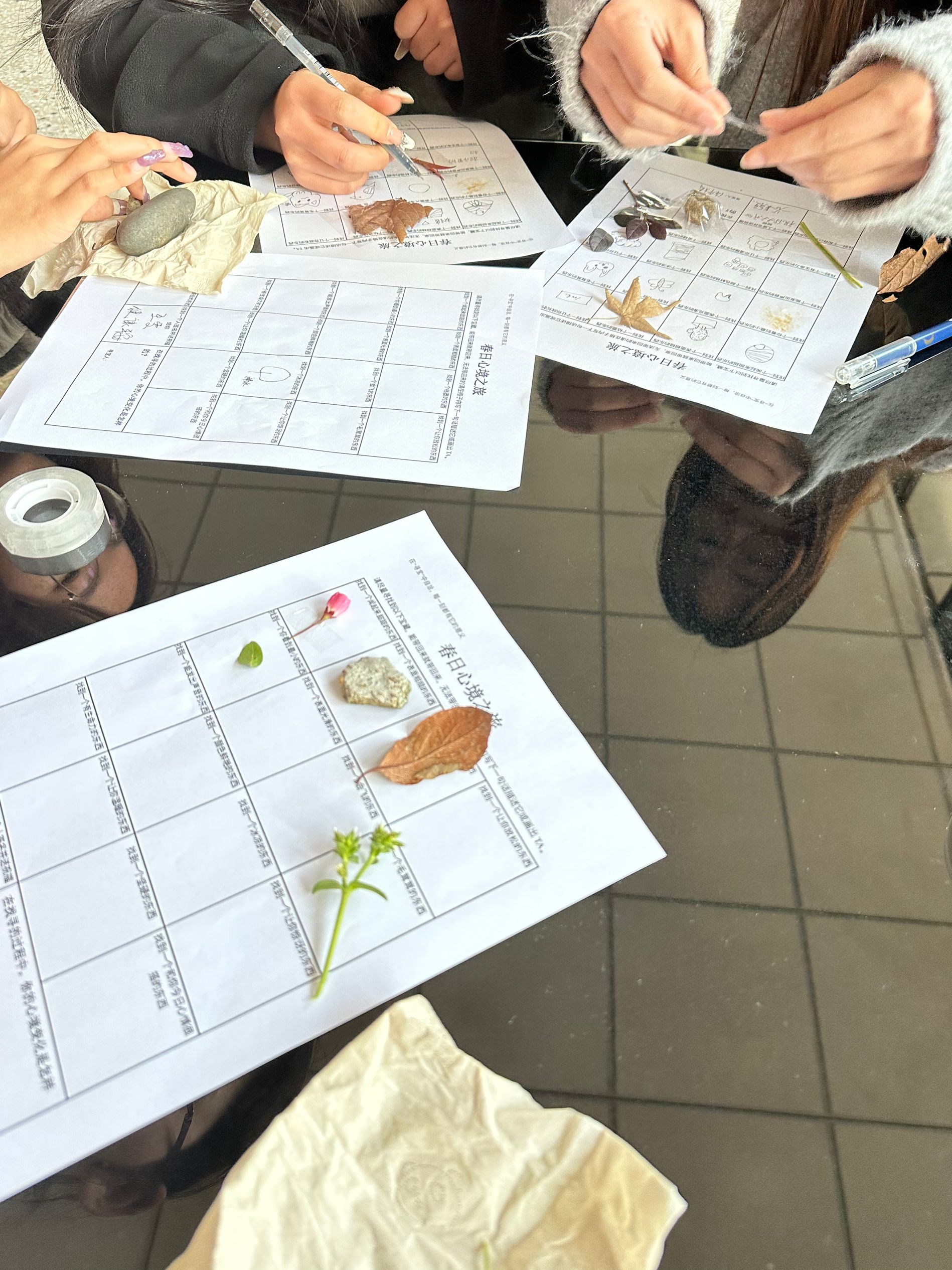 2024年3月20日,此次活动在厚生楼心理工作站开展。活动开展初期,每位参与者将从心理工作站的工作人员手中领取一份“情绪感知表”和签字笔,根据表格中描述的要素及特点,找寻校园中符合描述的物体。完成“感知表”的同学可以寻找一位陌生人给予祝福,最后将祝福写在风铃上,共享给其他同学。通过找寻过程,清晰各种描述所呈现出的多样性特征,从而引导学生采取多角度看待同一事务的能力。如“找到一个温暖的物体”“找到一个有生命力的东西”等描述给学生带来积极向上、乐观正向的心理引导。