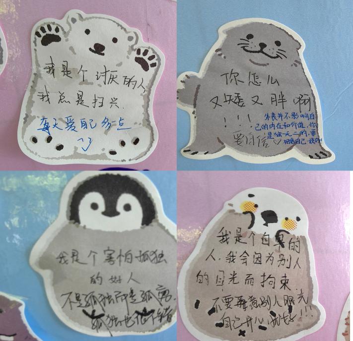 在此次活动中,面对自己的负面标签,同学们并没有选择逃避或否认,而是勇敢地面对并尝试重新定义。同时,活动吸引了半岛online(中国)师生们的互动参与,也进一步增进了师生之间的了解和信任。通过此次活动,同学们释放了内心的压力和焦虑,有助于他们保持积极乐观的心态和良好的心理健康状态,也将激励他们在未来的学习和生活中勇于直面困难和积极追求进步。