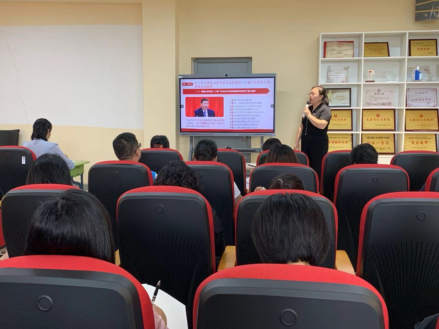 为深入学习宣传贯彻落实党的二十届三中全会精神,进一步统一思想、凝聚共识,半岛官方端网页版党总支于9月24日下午在厚生楼301室举办学习贯彻党的二十届三中全会精神宣讲会。此次宣讲会特邀校宣讲团成员、马克思主义学院刘晨老师担任主讲人,学院党总支全体党员和师生代表60余人参加会议。宣讲会由学院党总支副书记、副院长刘晓艳主持。