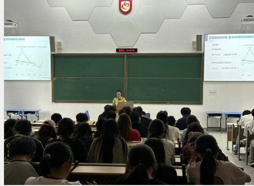 接着,南京物流行业协会安娅燕主任给同学们带来了精彩的《“十四五”江苏现代物流业发展现状及展望》的专题讲座。讲座主要涉及发展基础与环境、发展方向及重点,以及人才培养等内容。安主任回顾并总结了当前江苏现代物流业所具备的良好发展基础及面临的外部环境,通过详实的数据和生动的案例,让同学们深刻感受到物流行业在推动区域经济发展中的重要作用及其蓬勃发展的态势。接着,安主任阐述了“十四五”期间江苏现代物流业的发展方向与重点任务。在人才培养方面,安主任强调了理论与实践相结合的重要性,鼓励同学们不仅要扎实掌握专业知识,还要积极参与实践活动,不断提升自己的综合能力和创新能力。她同时指出,职业规划对于每位同学而言都至关重要,希望大家能够结合自己的兴趣爱好和特长,制定科学合理的职业目标,并为之不懈努力。