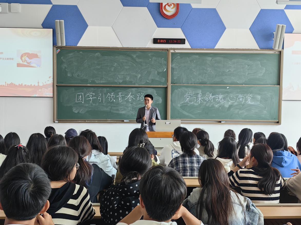 开班仪式结束后,学院分团委书记刘华辉老师以 “团学引领青春路,党课铸魂心向党” 为题,进行了第一讲授课。他以习近平总书记在党的二十大报告中对青年的殷切嘱托为开篇,深刻阐释了青年一代在全面建设社会主义现代化国家、实现第二个百年奋斗目标进程中的关键角色与重大责任。青年强则国家强,当代中国青年生逢其时,施展才干的舞台无比广阔,实现梦想的前景无比光明。