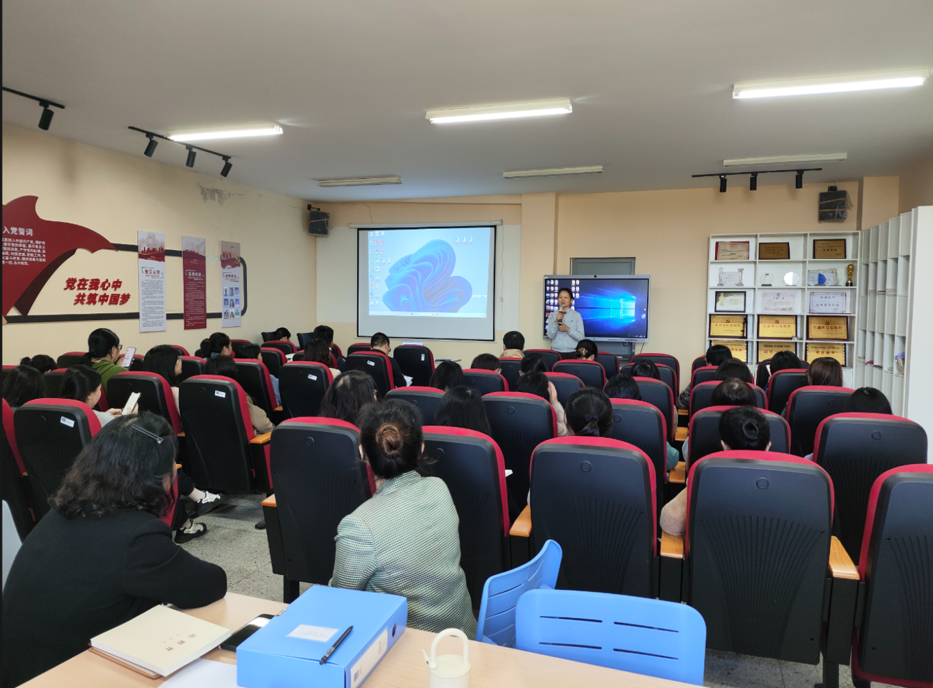 作为此次学习的第一部分内容,首先进行的是宪法学习宣传。刘晓艳结合当前热点违法案例,强调宪法就像空气、阳光,与我们的生活密不可分,给予我们保护。接着,学院“学宪法,讲宪法”演讲初赛中脱颖而出的6名优秀选手依次上台,为教职工进行宪法知识演讲展示。他们围绕宪法的主题,结合自己的理解与实践,用生动的语言、真挚的情感,阐述了宪法的重要性和个人对宪法的认识。每位选手的演讲都各具特色,既有深入浅出的理论阐述,也有贴近生活的实例分享,赢得了在场教职工们的阵阵掌声。此次演讲展示不仅为选手们提供了一个展示自我、锻炼能力的平台,也进一步增强了全体师生的宪法意识,营造了浓厚的法治氛围。