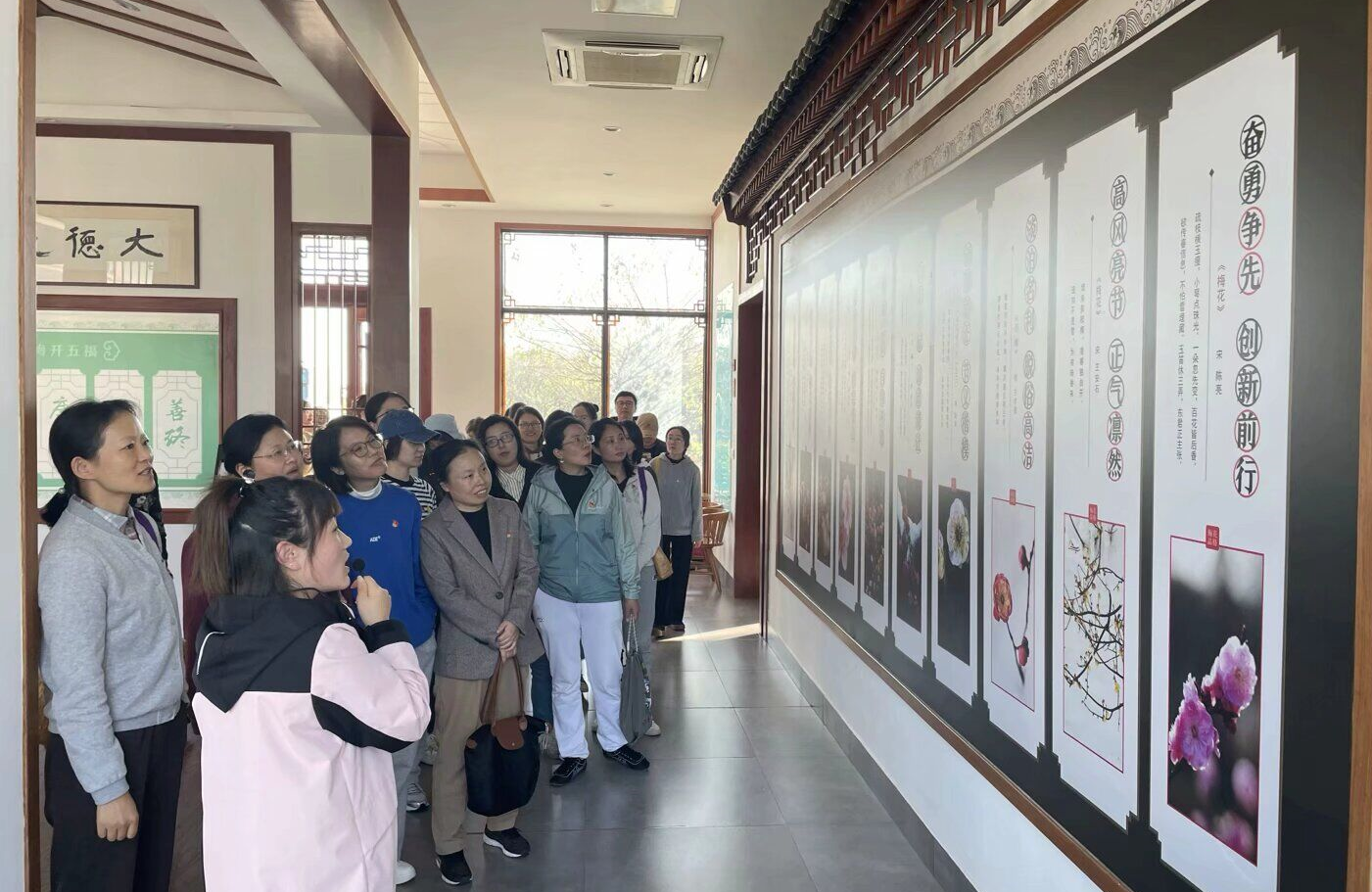 半岛官方端网页版的党员们在党总支的带领下,怀着崇敬的心情步入秦淮梅园廉洁文化博物馆。首先映入眼帘的是一块毛泽东诗词《卜算子·咏梅》的雕刻展板。跟随解说员的讲解,党员们了解到了历史上众多与梅花元素相关联的开国功勋、清官廉吏的感人故事,感受了他们以坚忍不拔、谦逊高洁的梅花精神为人格追求的崇高品质。通过一幅幅生动的图文资料和一首首文采斐然的诗词歌赋,党员们深刻感受到了中华优秀传统文化中蕴含的廉洁基因,以及新时代下党风廉政建设和反腐败斗争的艰巨性和长期性。