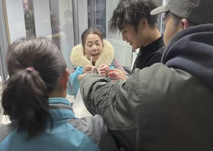 活动的高潮,是同学们带着亲手包好的饺子,满怀心意与祝福,来到六栋宿管阿姨的值班室。当热气腾腾的饺子递到阿姨手中时,她们的脸上绽放出惊喜与感动的笑容。一位宿管阿姨激动地说道:“谢谢,在这大冷天还想着我们,这饺子吃在嘴里,暖在心上!” 这简单的话语,饱含着深深的感动,也让这份冬日的温暖进一步升华。