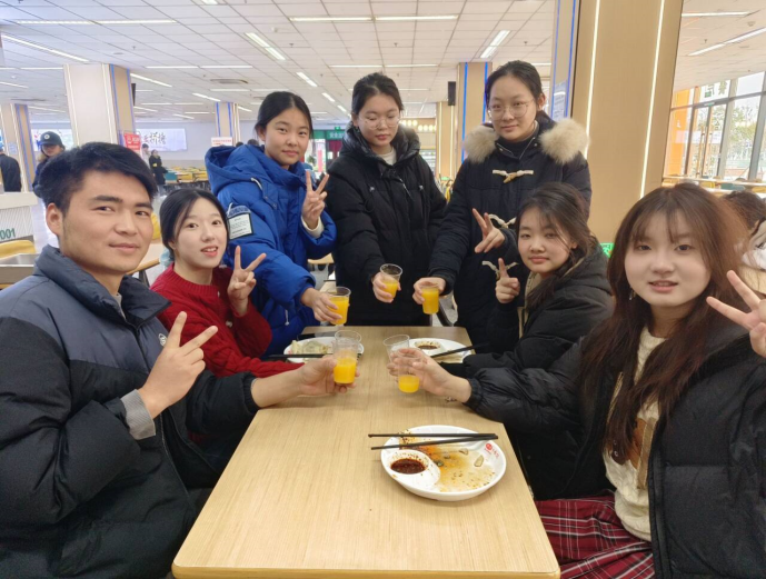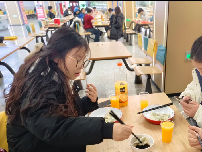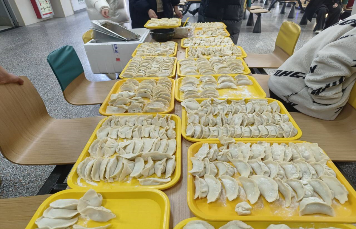 随后,热气腾腾的饺子出锅,四溢的香气瞬间弥漫整个食堂。同学们品尝着自己亲手包的饺子,脸上洋溢着幸福与满足的笑容。这一口口饺子,仿佛有着神奇的魔力,驱散了冬日的严寒,也带走了学习的疲惫与烦恼,留下的只有相聚的欢乐和情谊的温馨。