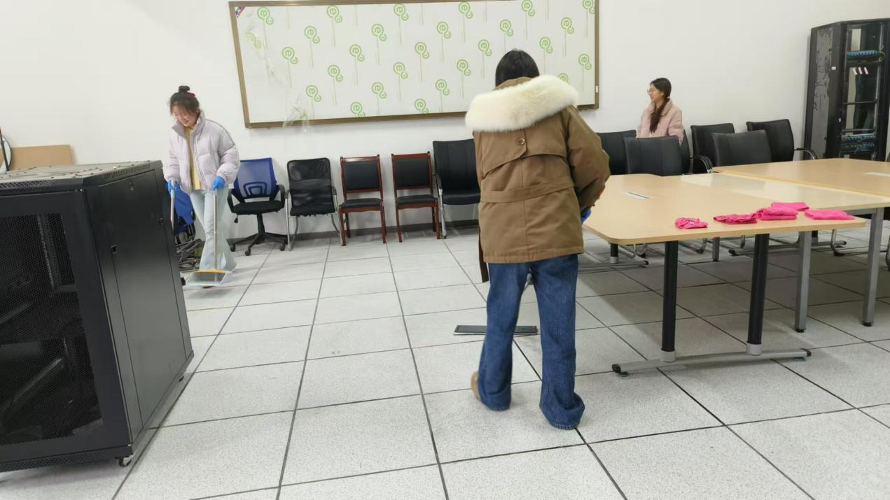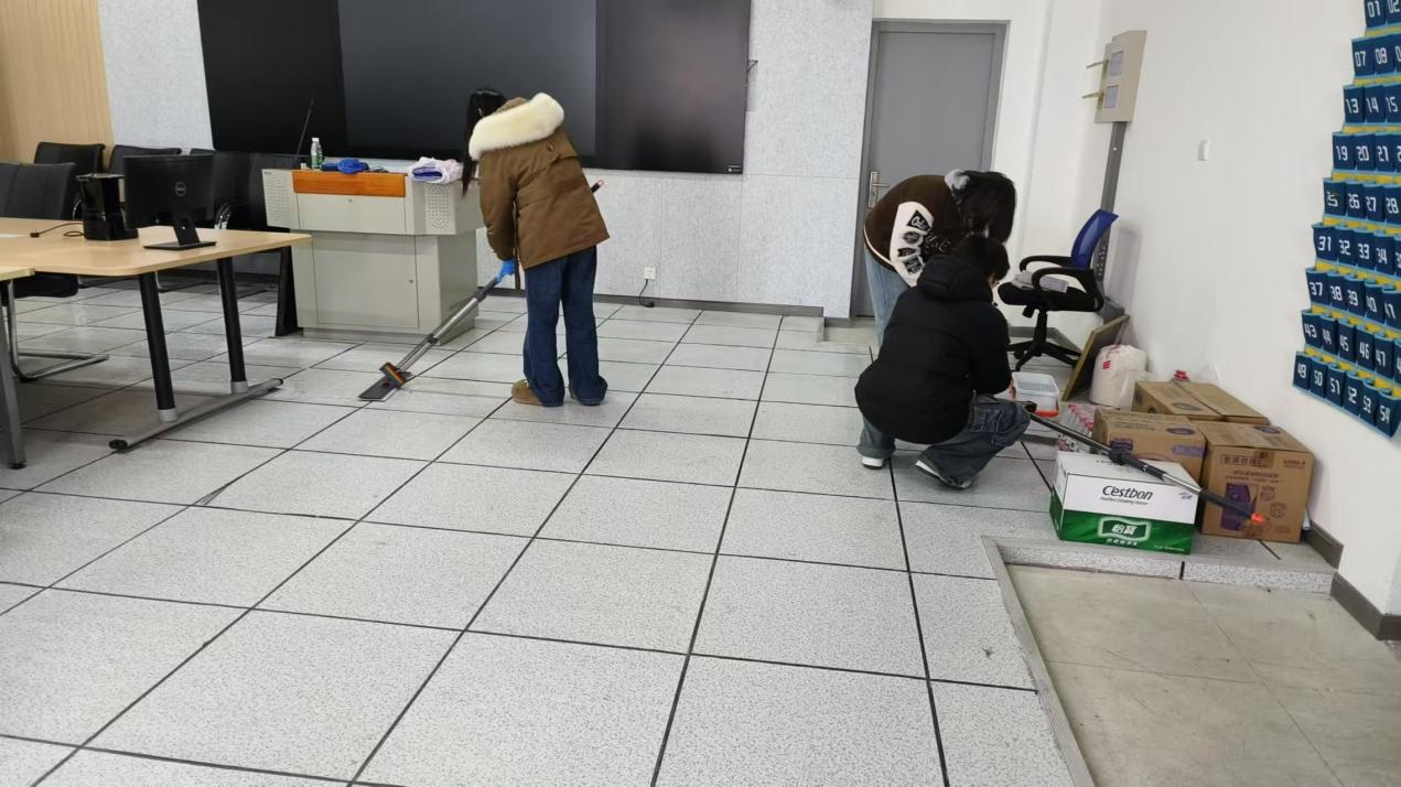 除了 “净・美” 校园行活动,学院还组织了新发展团员参与学院会议室的清洁工作。活动得到了团员们的积极响应,大家带着清洁工具,准时在学院集合。在老师的带领下,团员们明确分工、各司其职,整个打扫过程有条不紊。大家不怕脏、不怕累,认真清理每一个卫生死角,不放过任何细节。经过努力,学院会议室焕然一新,地面干净整洁,桌椅摆放整齐,窗户明亮透彻,营造出舒适宜人的环境。