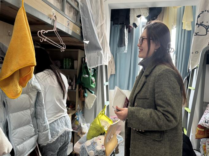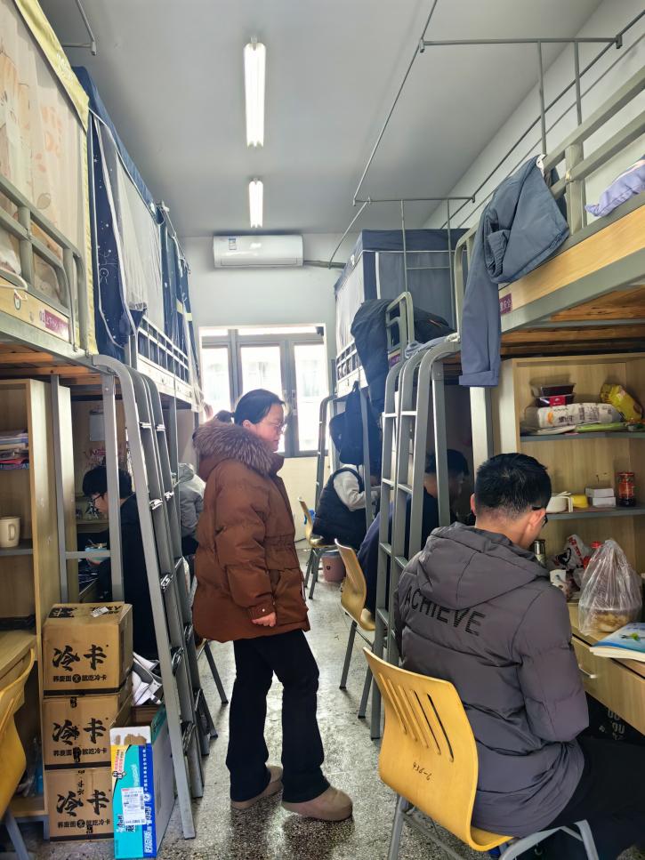 鉴于新生们已然开启第二学期的大学生活,辅导员们针对其学习状态的调整给予了悉心指导。着重强调,经过第一学期的适应,在新学期更要及时调整学习状态,鼓励同学们制定科学合理的学习计划,尽快适应大学的学习节奏,积极投身于各类学术活动与社团组织,全方位提升自身综合素质。此外,宿舍卫生亦是此次走访的重点之一。辅导员们仔细查看了各个宿舍的卫生情况,对那些整洁有序的宿舍予以表扬,同时也对部分存在卫生问题的宿舍提出了具体的整改意见。他们着重指出,良好的宿舍卫生不仅关系到个人健康,更能充分反映出同学们的精神风貌与生活态度。希望同学们能够养成良好的卫生习惯,共同维护宿舍的整洁与美观,打造一个温馨舒适的生活空间。