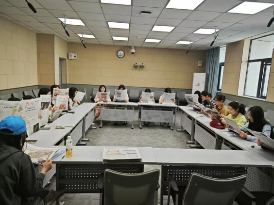 在读书分享会之后,同学们还拿到了一份近期的南京日报,进行了报纸交流会。大家浏览报纸后,纷纷就自己关注到的时事新闻发表观点和看法。国内国际的热点新闻,如赛事活力与志愿精神、民生保障与国际视野、国家发展与前沿科技等,都成了同学们讨论的话题。报纸交流会不仅让同学们了解了社会发展的最新动态,还提升了他们的时事新闻关注度,拓宽了国际视野。