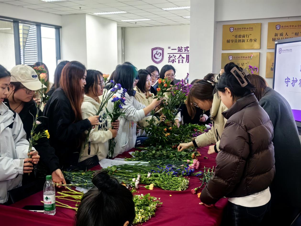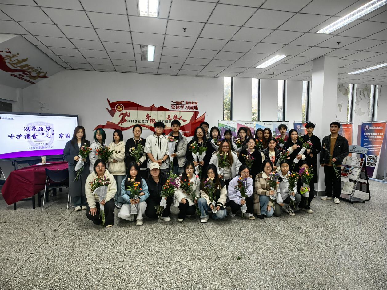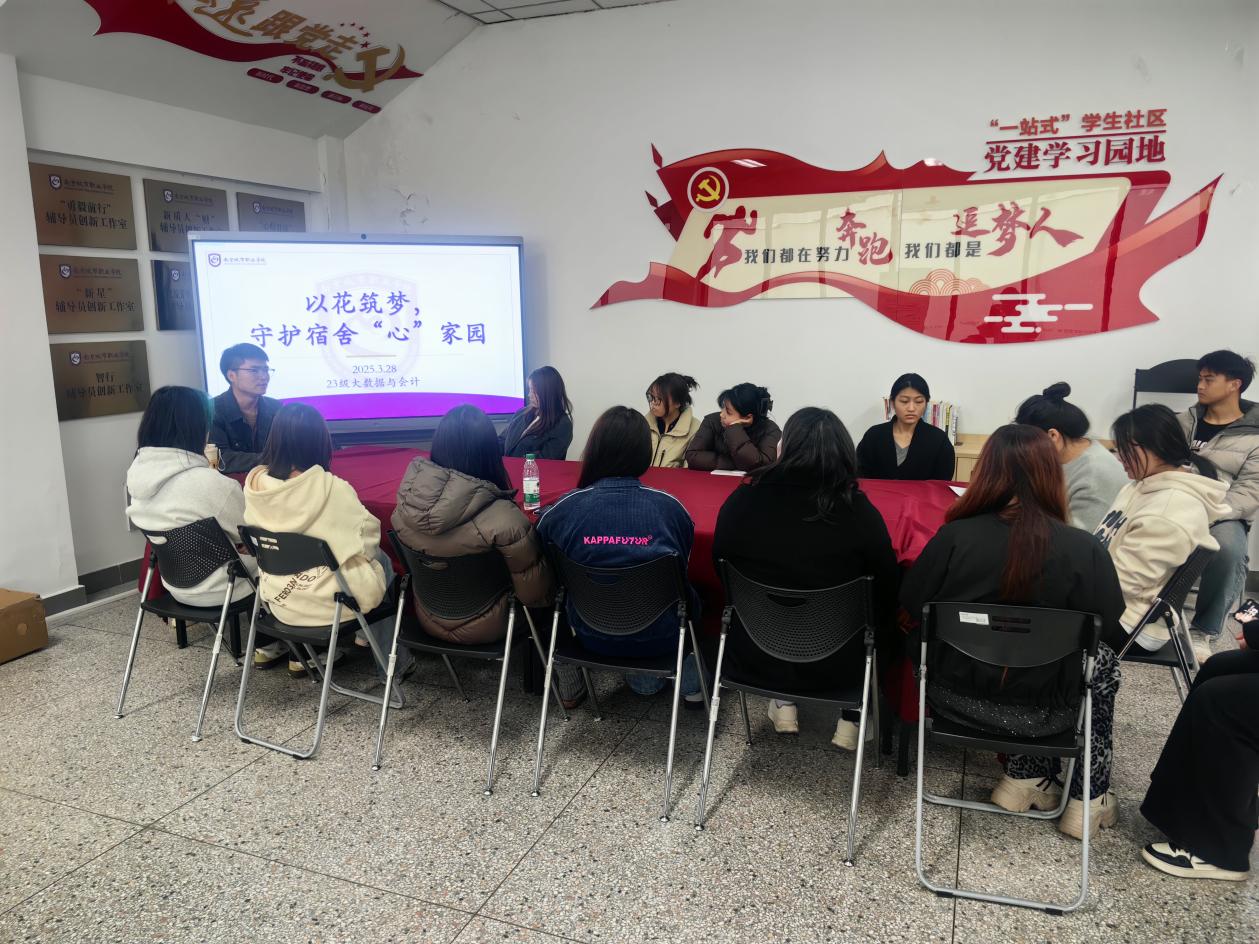 春日的暖阳透过玻璃窗洒进“一站式”学生服务中心,空气中浮动着淡淡的花香。3月28日下午,23大数据与会计专业的学生干部以及各宿舍长齐聚于此,以一场别开生面的心理团辅活动,为校园生活添上一抹温暖的色彩。此次活动以“以花筑梦 守护宿舍‘心’家园”为主题,依托学校“一站式”学生社区平台,旨在通过艺术疗愈与团体辅导的创新结合,强化宿舍文化建设,提升心理健康水平。