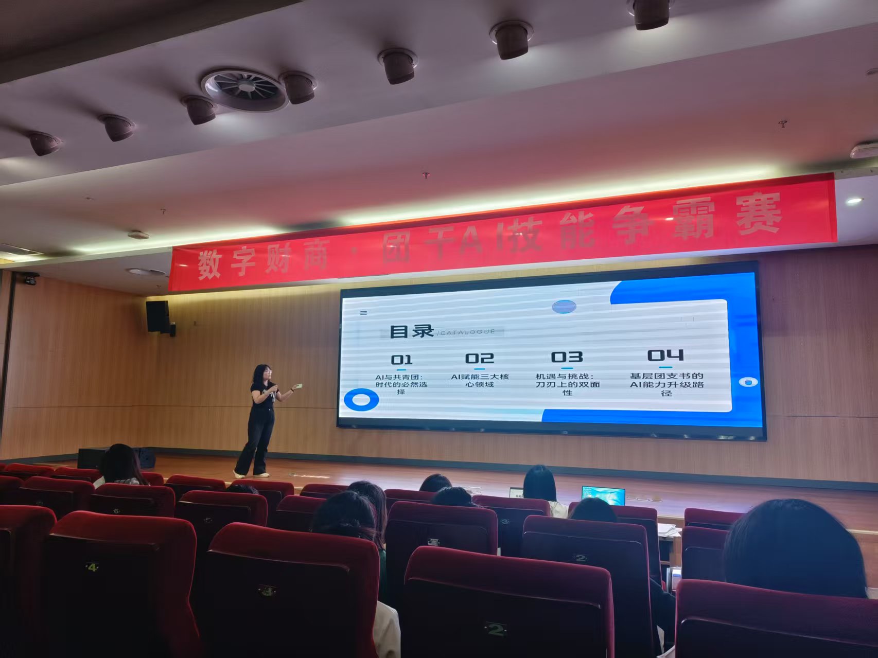 2025年4月16日,半岛官方端网页版分团委在图书馆报告厅成功举办了以“AI相伴,强技砺行”为主题的团干技能大比武活动。本次活动旨在通过学生的演讲与展示,激发学生在人工智能时代不断提升自我能力、强化技能训练,并加强团组织的凝聚力与向心力。本次活动吸引了各班团支书积极参与,每位团支书根据主题“AI相伴,强技砺行”精心准备了PPT,并在规定时间内进行演讲展示。演讲内容涵盖了人工智能的基础知识、AI在日常学习中的应用、AI与未来职业发展的关联以及如何通过AI工具提升自我技能等方面。