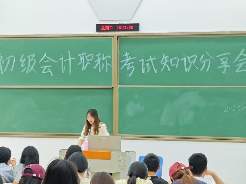 分享会在主持人唐梦冉的开场中拉开帷幕。首先,唐青玉老师围绕《初级会计实务》展开深度讲解,结合 2025 年考试大纲剖析核心考点,以“资产核算”“收入成本”等重难点为例,通过案例解析帮助学生理清知识脉络。建议同学们将焦虑转化为行动动能,通过“思维导图+错题复盘”构建系统化知识体系。随后,张淑静老师对比《会计实务》与《经济法基础》的学科特点,指出经济法“重理论、分模块” 的学习规律,针对税法与非税法部分提出差异化策略—— 前者需精准掌握税率计算,后者可依托学校职教平台的 “在线课程+模拟测试”强化记忆。她提醒考生:“最后冲刺阶段,真题训练要‘精’不要‘量’,同时需调整作息、保持状态,以最佳身心节奏迎接考试。”