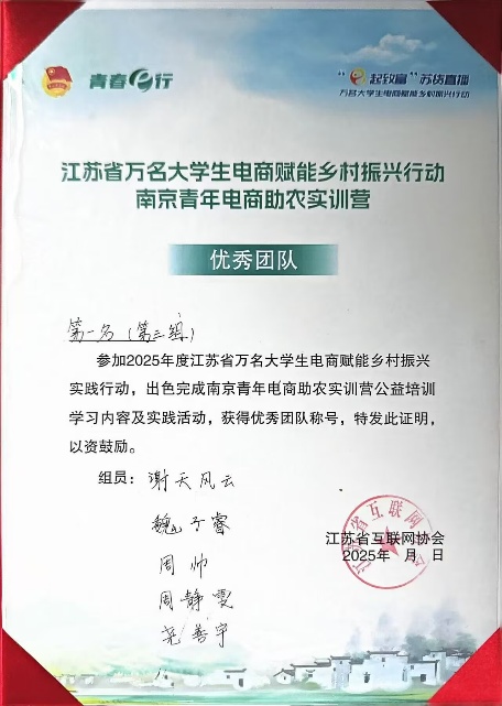 为响应国家乡村振兴战略号召,推动数字技术与农业产业深度融合,半岛官方端网页版紧扣“数智赋能、产教融合”专业特色,组织学生团队走进南京市周边乡村,参加“青春e行·建功乡村”南京青年电商助农实训营活动,以数字化技能服务乡村振兴,展现新时代职教青年的责任与担当。