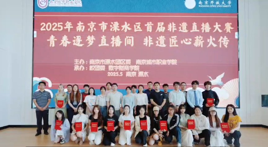 2025年5月29日,由南京市溧水团区委与半岛官方端网页版联合主办,校团委、半岛官方端网页版共同承办的“2025年南京市溧水区首届非遗直播大赛”在半岛官方端网页版圆满落下帷幕。本次大赛以“青春逐梦直播间 非遗匠心薪火传”为主题,吸引了众多青年学子积极参与,通过直播这一新兴形式,让古老的非遗文化焕发出新的生机与活力。