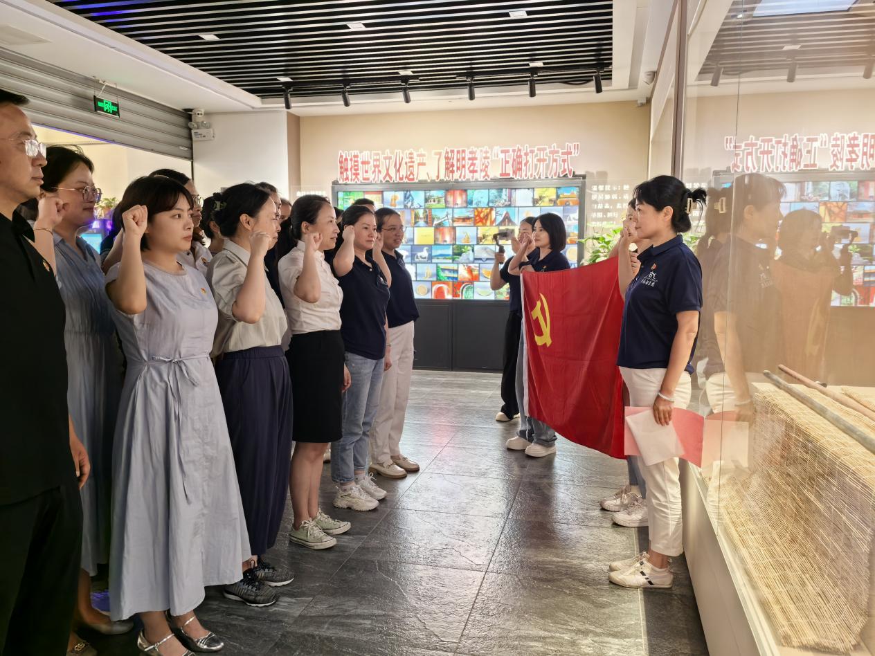 随后,在企业党支部书记的领誓下,全体党员整队肃立,举起右手,庄严宣誓。铿锵有力的誓言在展厅回荡,表达了党员们恪守廉洁纪律、发扬公仆精神、为党的事业奋斗终身的坚定承诺。